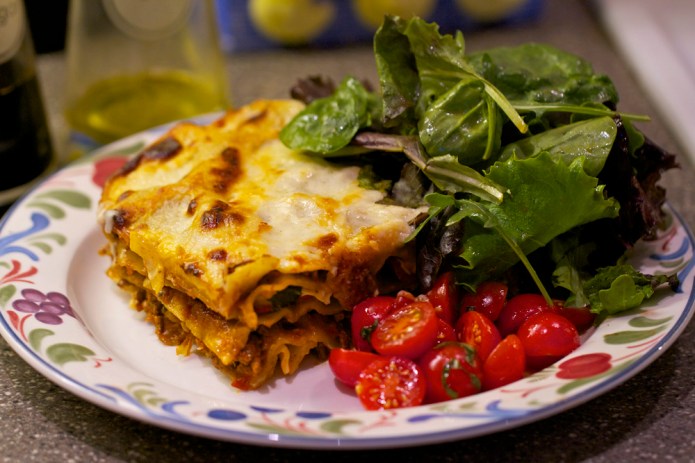 Lots of cheese So now we get on the subject of cheese….My friend’s rule on cheese is add what you think you need, then double it and add a bit more….pretty good rule. Some people might say that it could get too rich or it’s unhealthy, I suggest that they are secret cheese haters and should be told to jog on. Anyway I think a Lasagna should be rich. I serve my Lasagna with a really nice tomato salad thing which cuts through the richness perfectly.