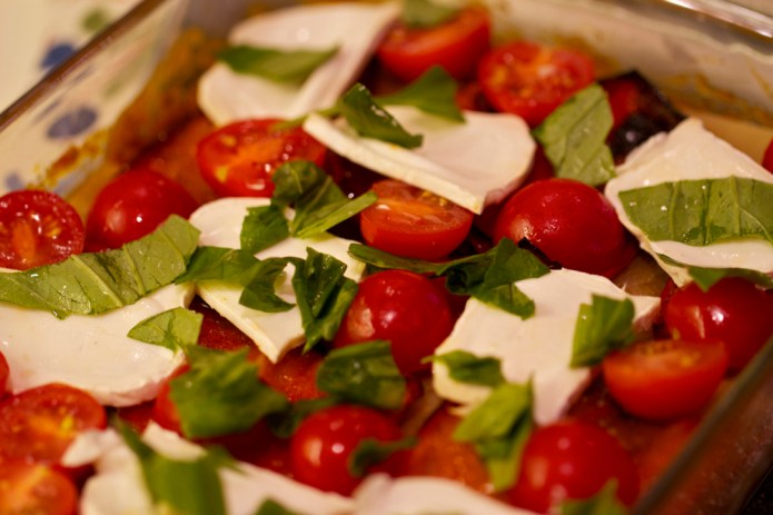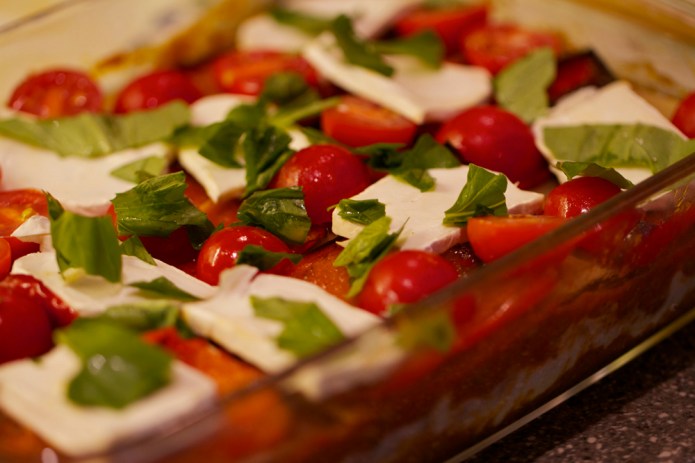 If I’m feeling a bit fancy I’ll make meatballs for my secret layer. I’d slice the meatballs and have them with some cherry tomatoes, mozzarella, basil and Parmesan. If you don’t have the meatballs then fresh tomato, mozzarella and basil is a great little layer. You could also do a spinach and ricotta layer or some sort of pesto with roasted red pepper and goats cheese or something.