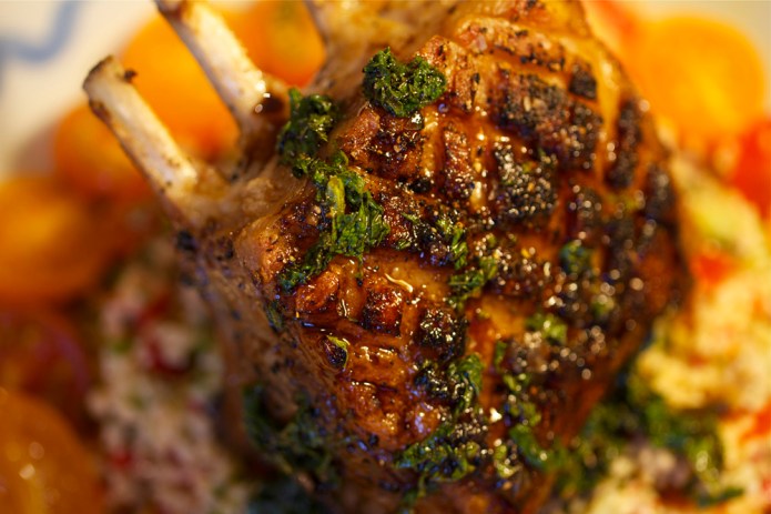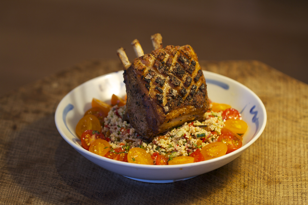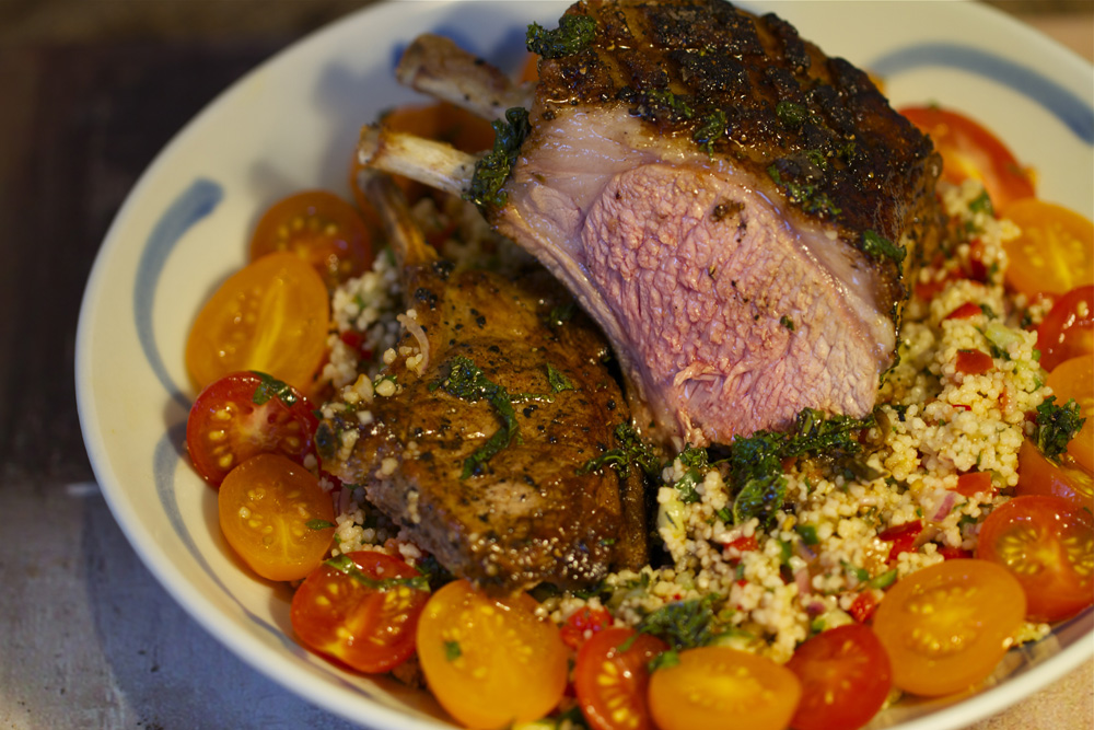 Roast Rack of Lamb with Tabbouleh, cherry tomatoes and a mint and balsamic dressing