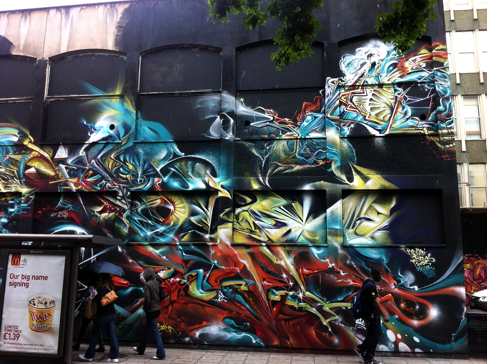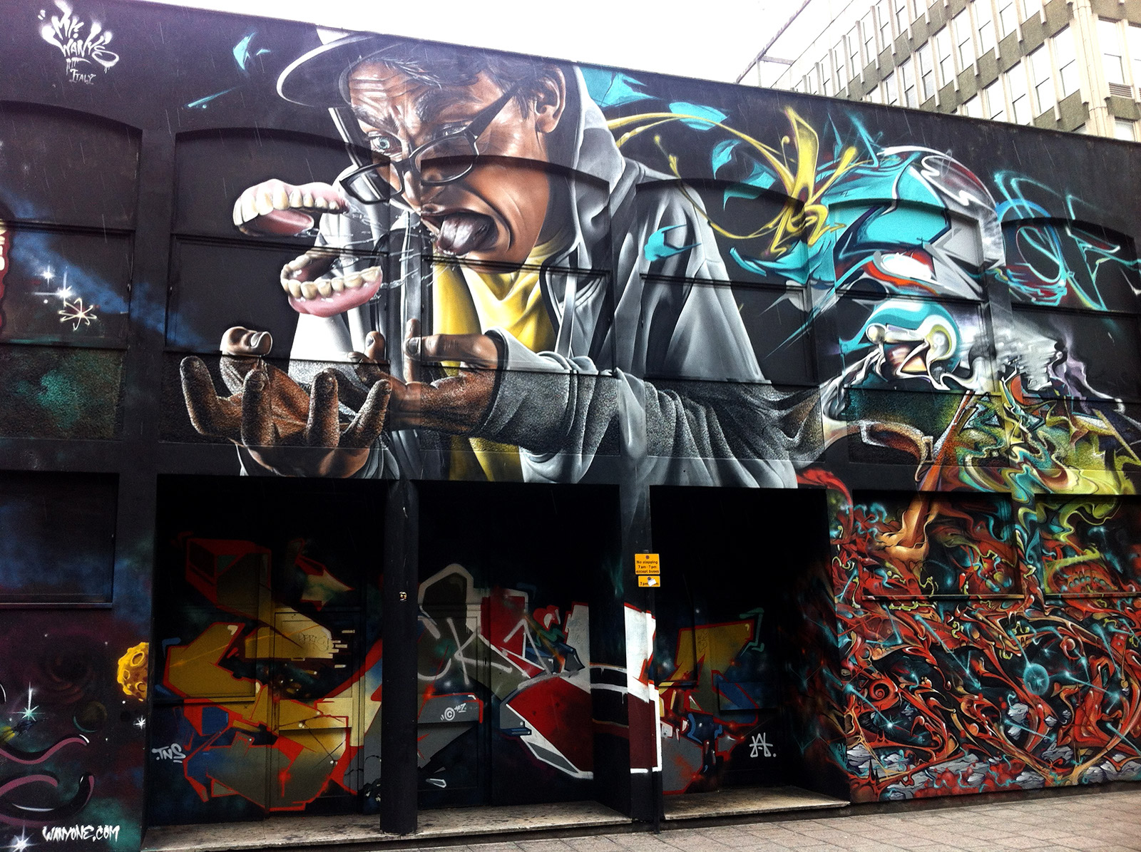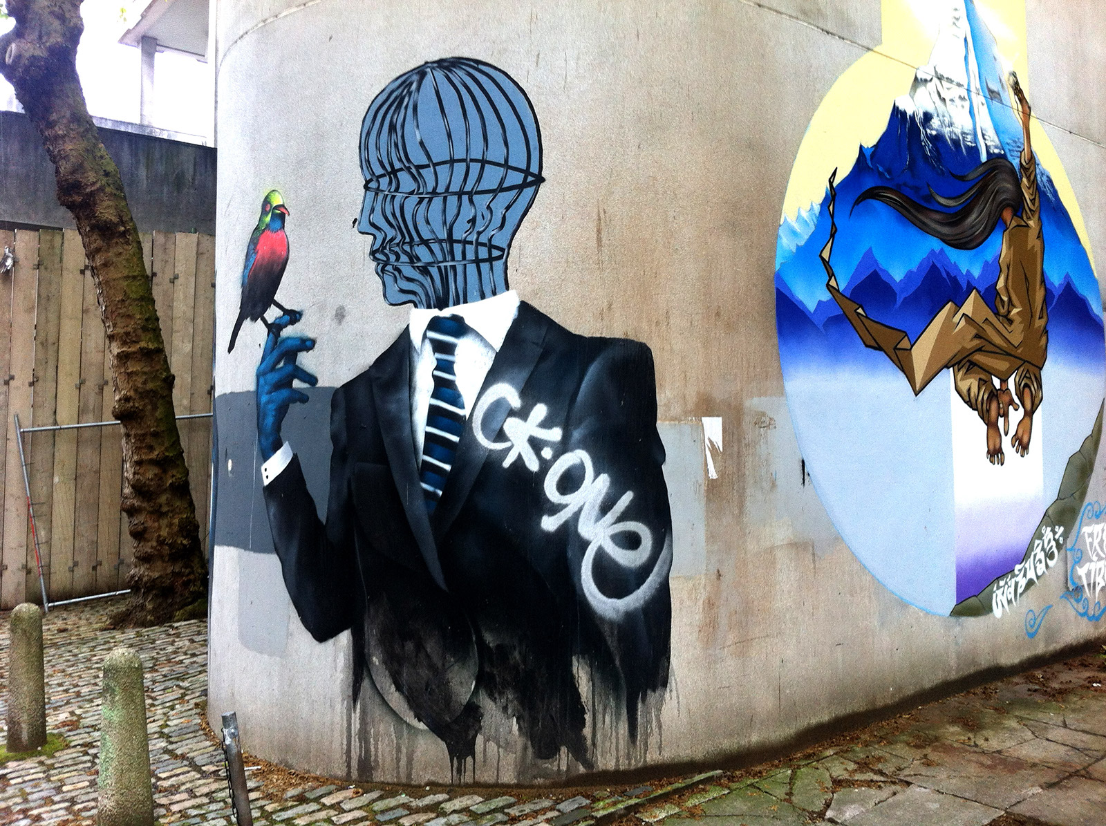 Oh and to finish my story off, our second day in Wales was supposed to be the main event as it were. A 30km ride over some mountains. Sod that. I waited in the car and listened to the radio and read the paper in the sun with a nice view over the Welsh hills. Nice. Oh and the weekend before in Bristol I saw some amazing graffiti. They shut off a whole block and a maze of streets and invited artists in from all over the world to create some amazing street art and had an exhibition. This all happened about 6 months ago or so. Most of it is still there. Some really cool stuff. Gallery below.