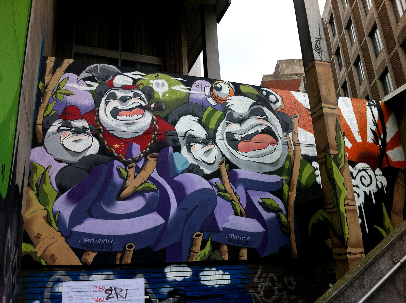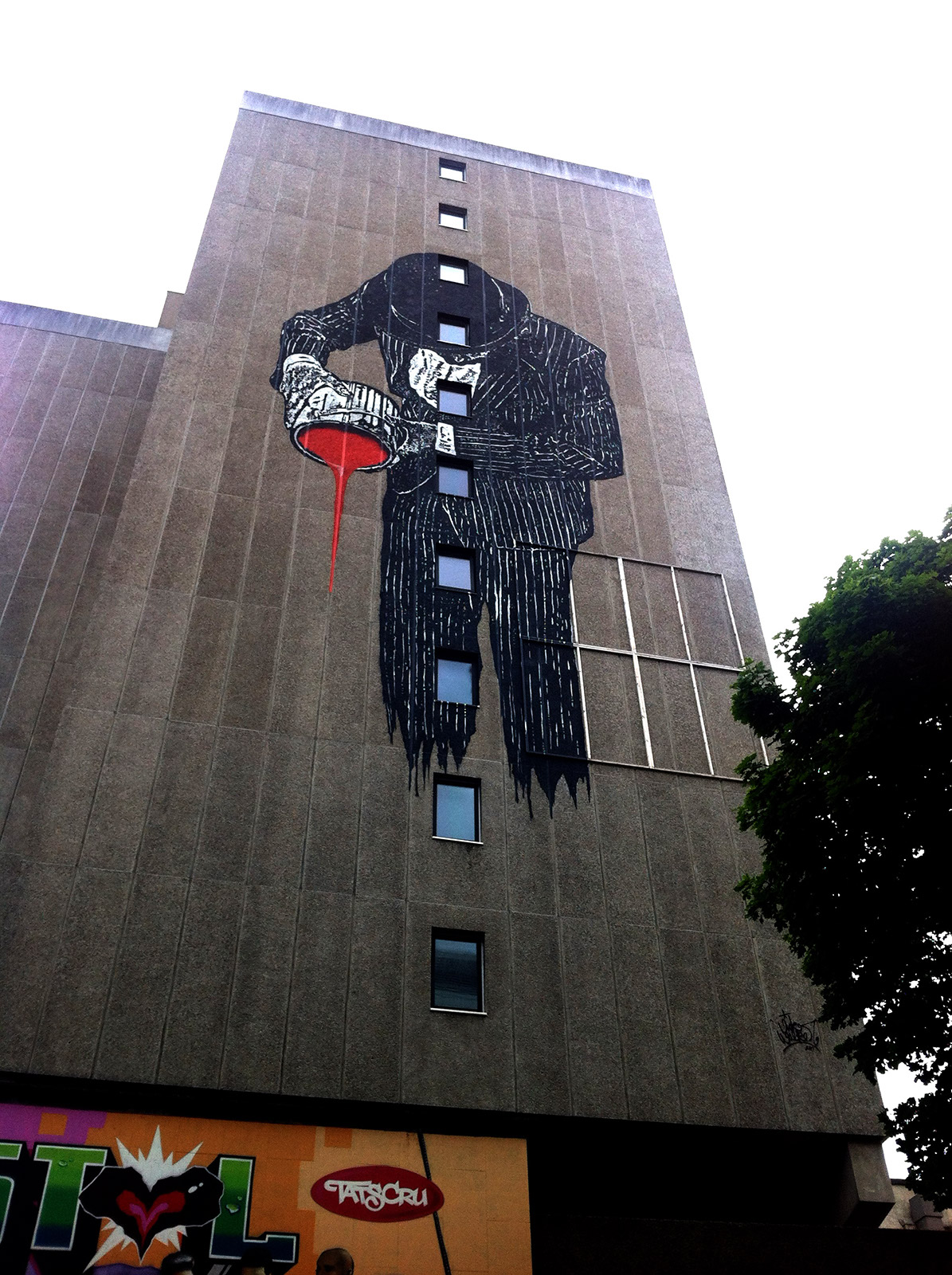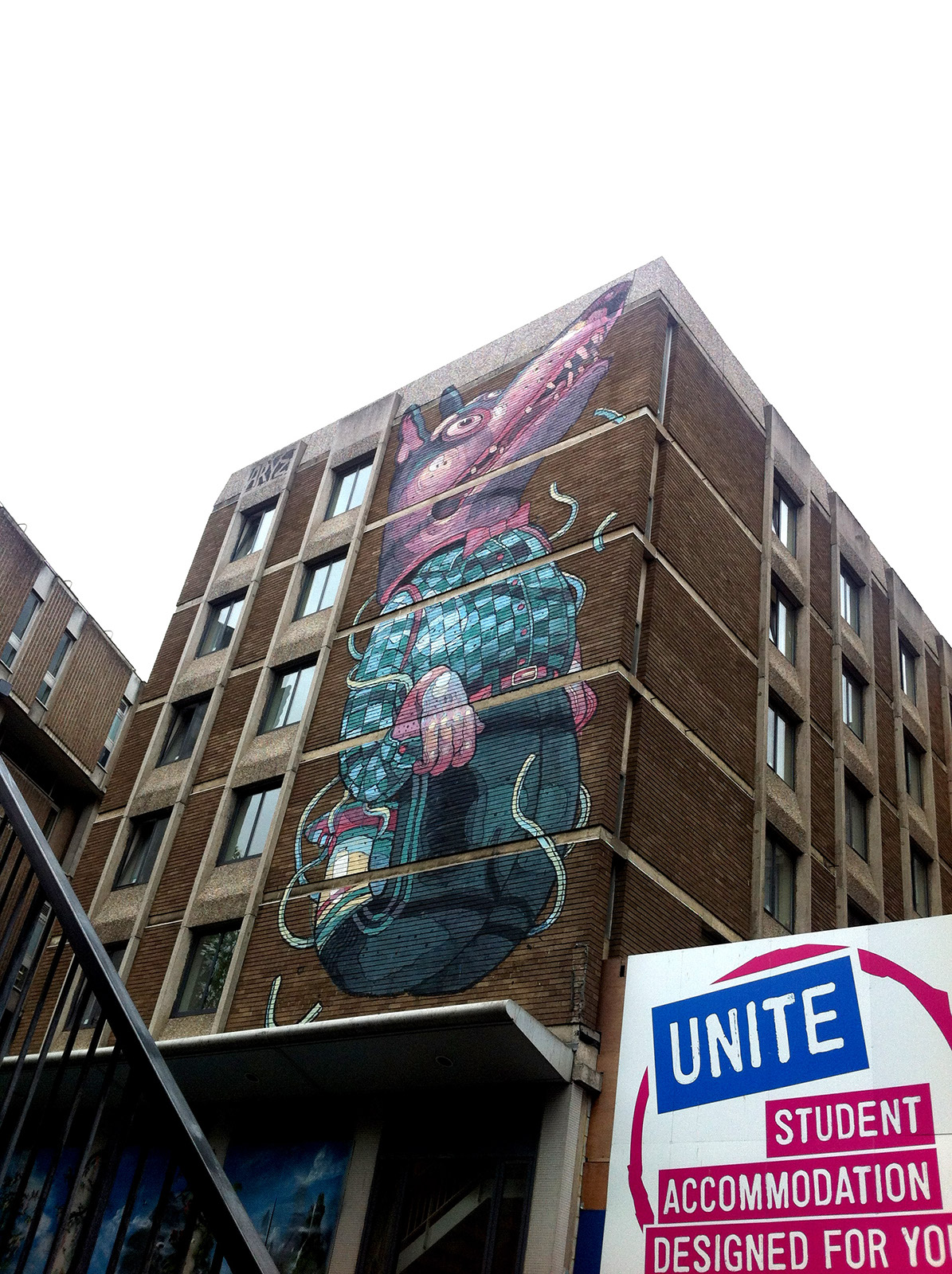 Oh and to finish my story off, our second day in Wales was supposed to be the main event as it were. A 30km ride over some mountains. Sod that. I waited in the car and listened to the radio and read the paper in the sun with a nice view over the Welsh hills. Nice. Oh and the weekend before in Bristol I saw some amazing graffiti. They shut off a whole block and a maze of streets and invited artists in from all over the world to create some amazing street art and had an exhibition. This all happened about 6 months ago or so. Most of it is still there. Some really cool stuff. Gallery below.