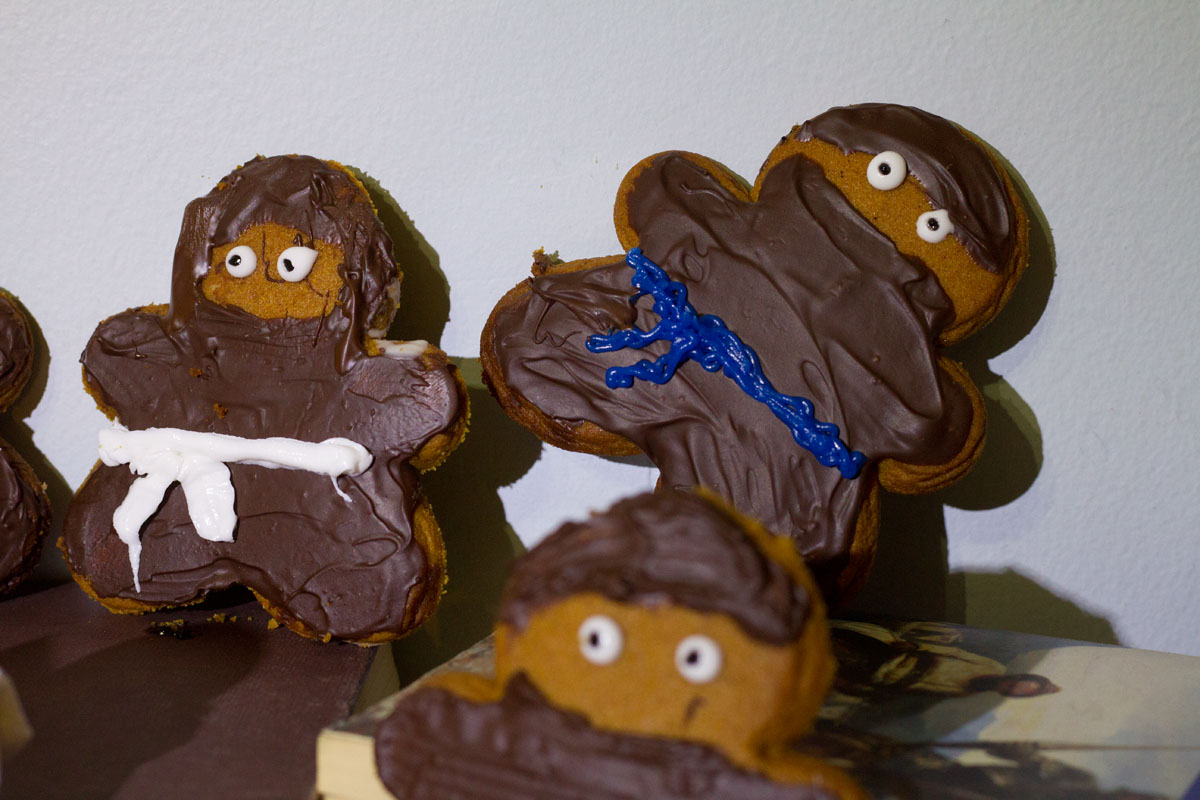 So this came about after my friend Abbey in a random text message said that I should make ginger bread men shaped like ninjas. I think the idea was then to create some kind of animation with ginger ninja bread men fighting. This part turned out to be a bit too much like hard work but we did manage to make the ginger ninja bread men. As you can see they are pretty damn cool.