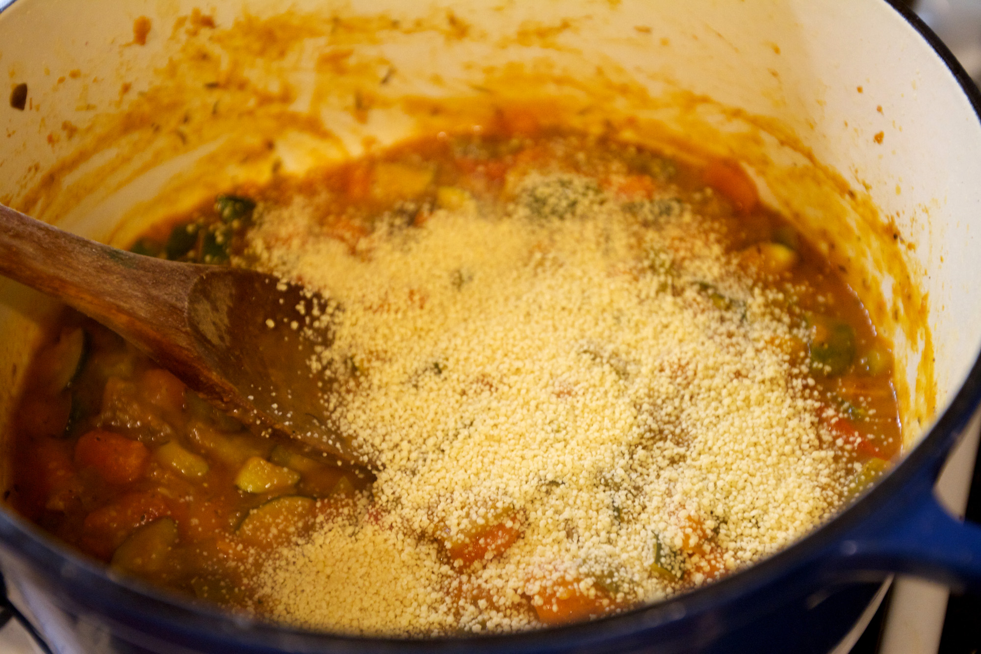 At this point we will add a handful of Quinoa. If you are using couscous instead we will add it later.