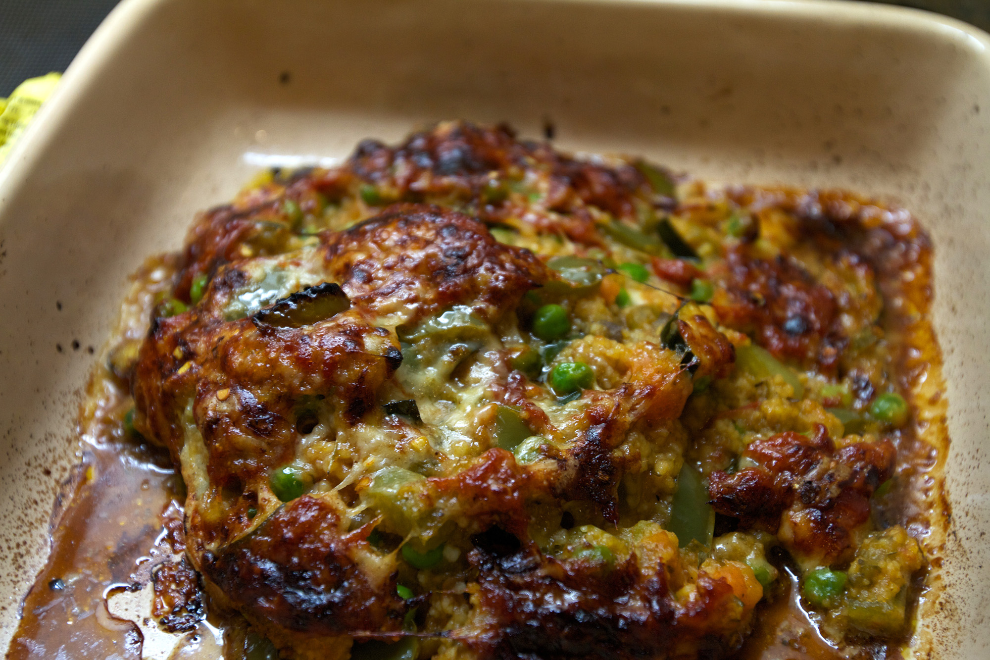 It looked great going in the oven but I put far too much on and it ended up like this…..