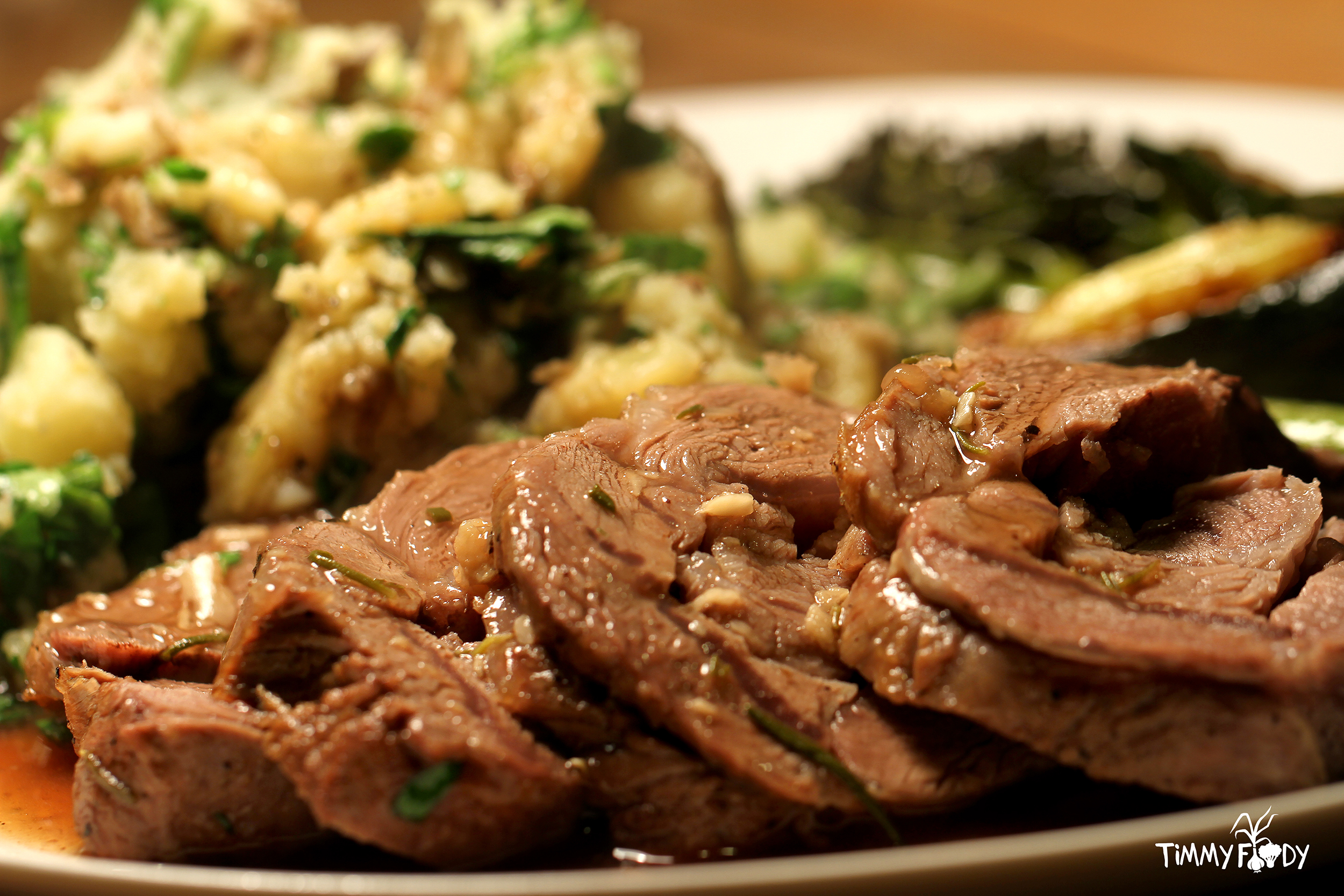 - Grab a small sauce pan. Pour the liquid that was in the dish you roasted the lamb in and smash up all the garlic. Add 2 healthy teaspoons of the red currant jelly and a teaspoon of freshly chopped rosemary. Add a good few grinds of black pepper. Mix up well and we’re done. It shouldn’t be a thick sauce just like a thin sauce. I think fancy people would call that a Jus.