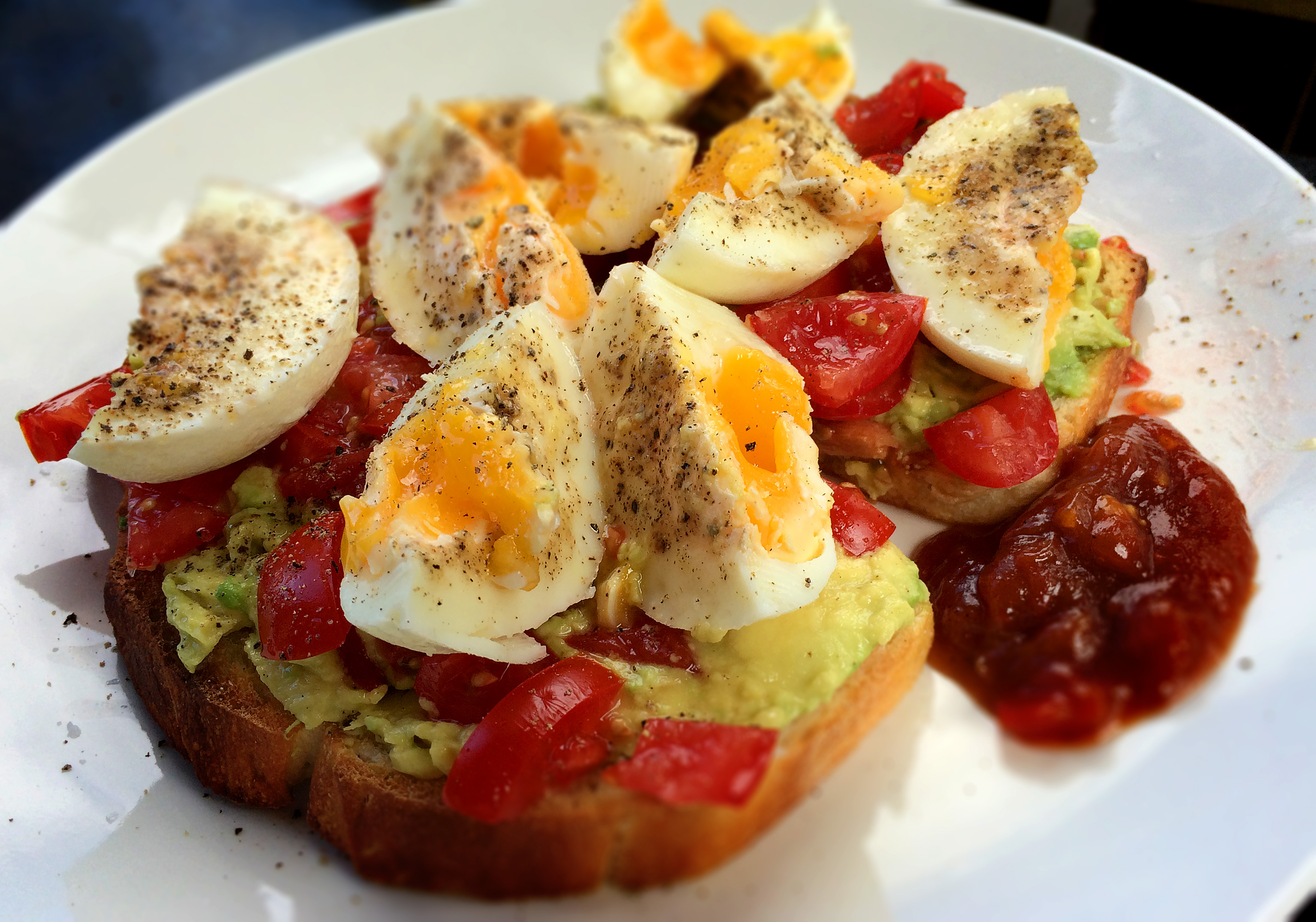 3. Toast your bread. Spread on the avocado then pop the tomatoes on top then cut up the eggs and give a final season of salt and pepper. I added a little spicy tomato relish on the side. This one here is by Beerenberg. Their range of relishes is amazing. I think I’m slightly addicted!