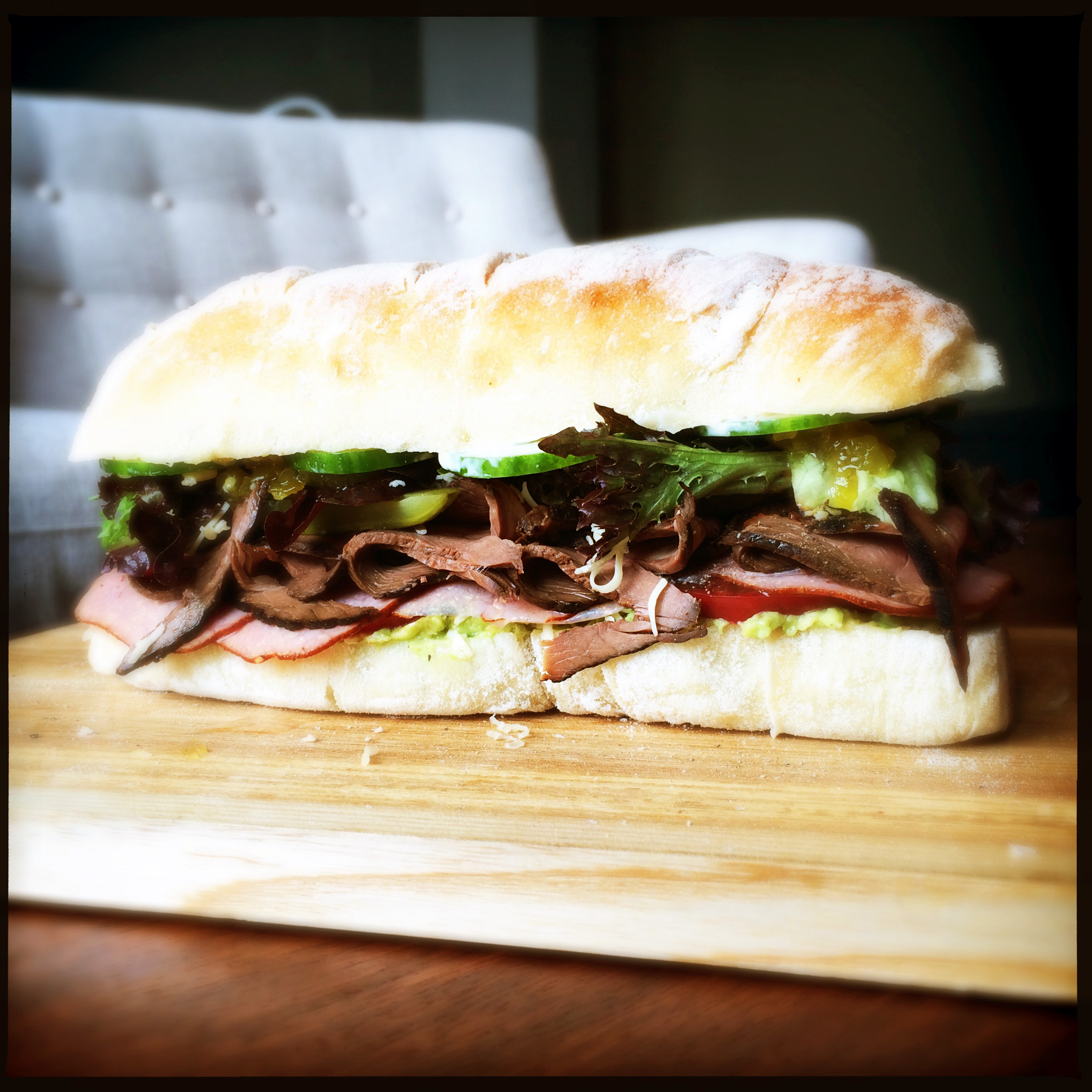 So this one had Rare Roast Beef, Pastrami and Ham on Sourdough. With a few little extra trimmings. For this one you will need